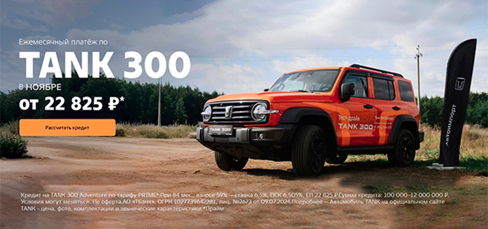 Ежемесячный платёж по TANK 300 в ноябре - от 22 825₽.